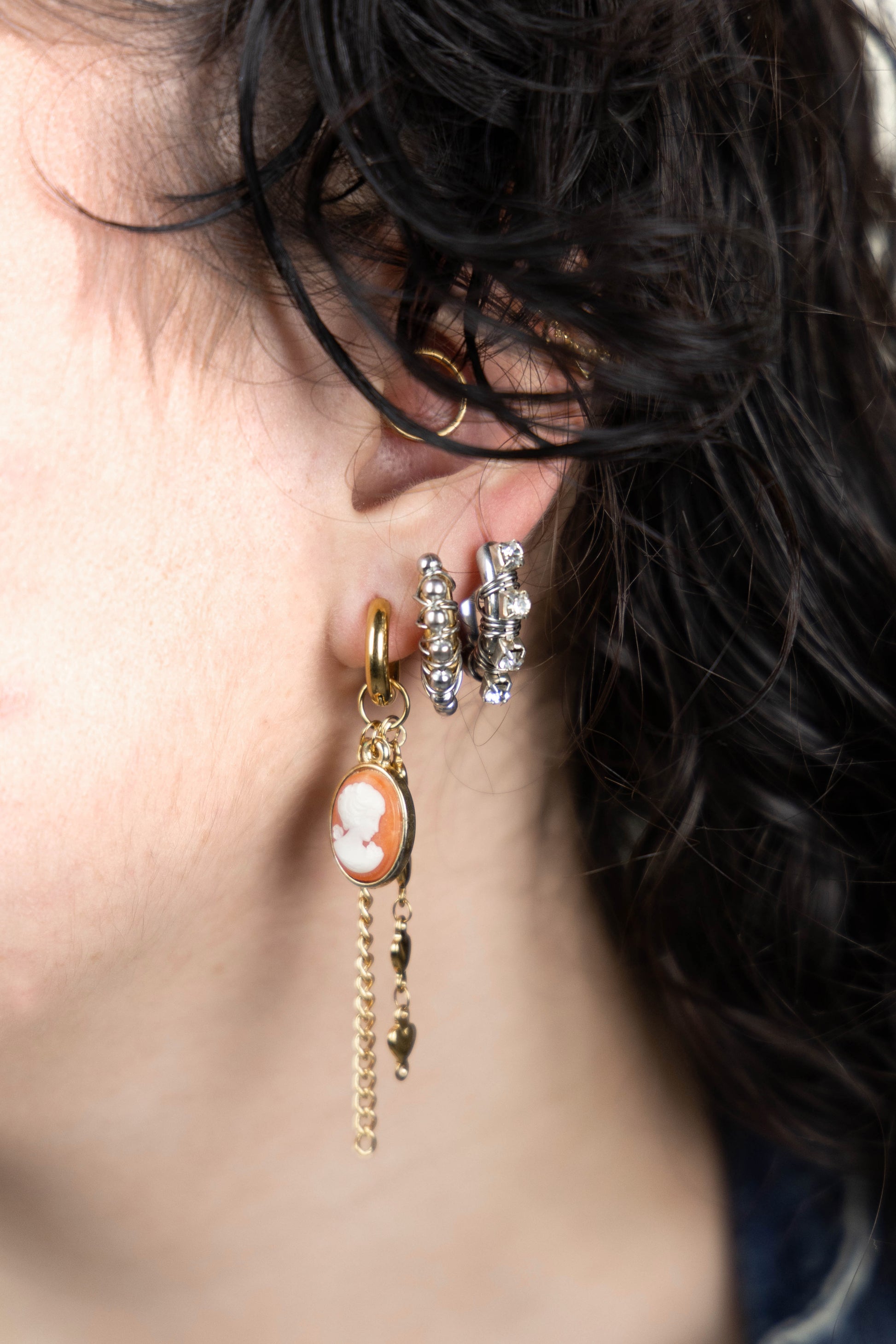 ☆ Pendentif camée plaqué or, vintage
