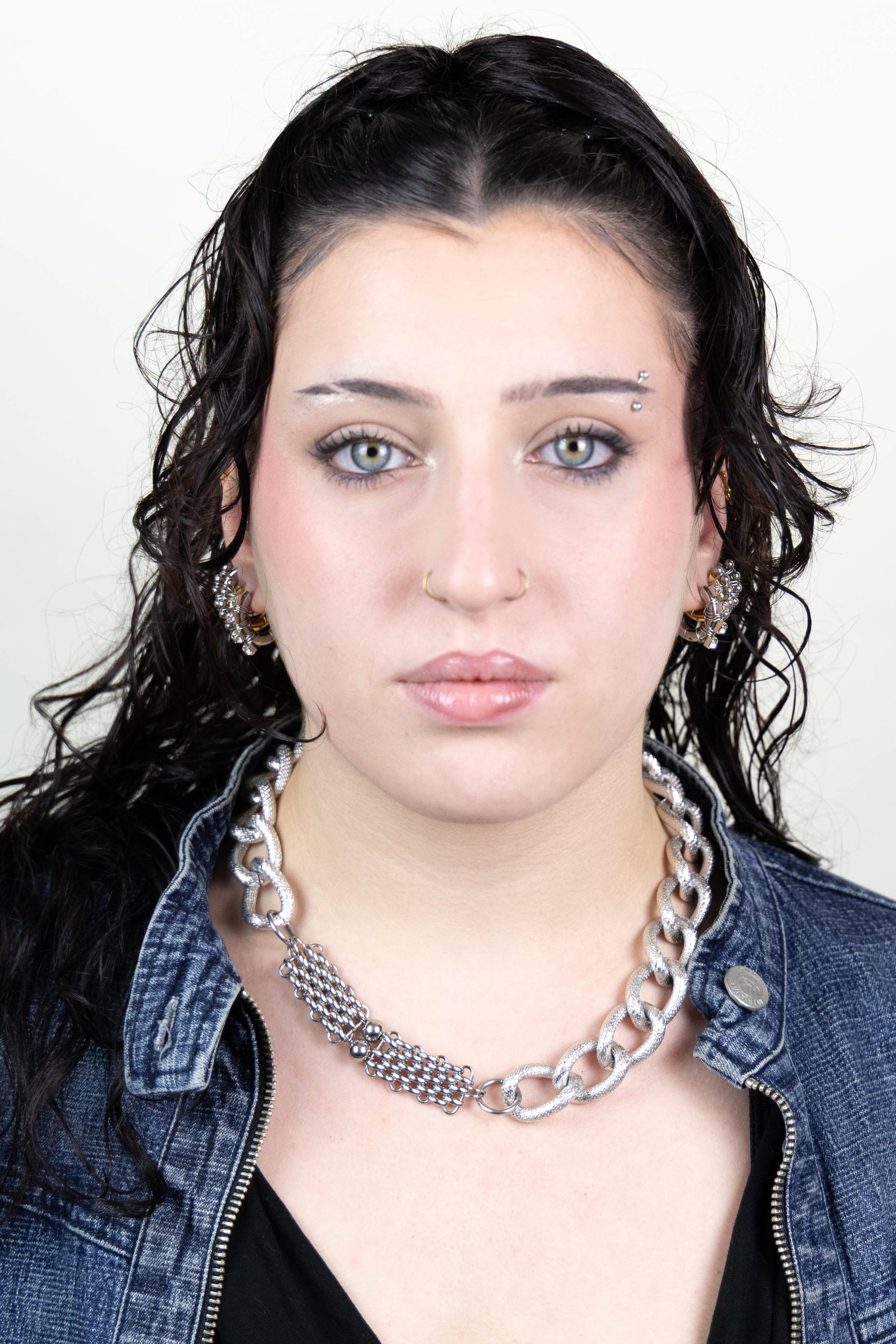 ☆ Chaîne gros maillons, aluminium rhodié, seconde main